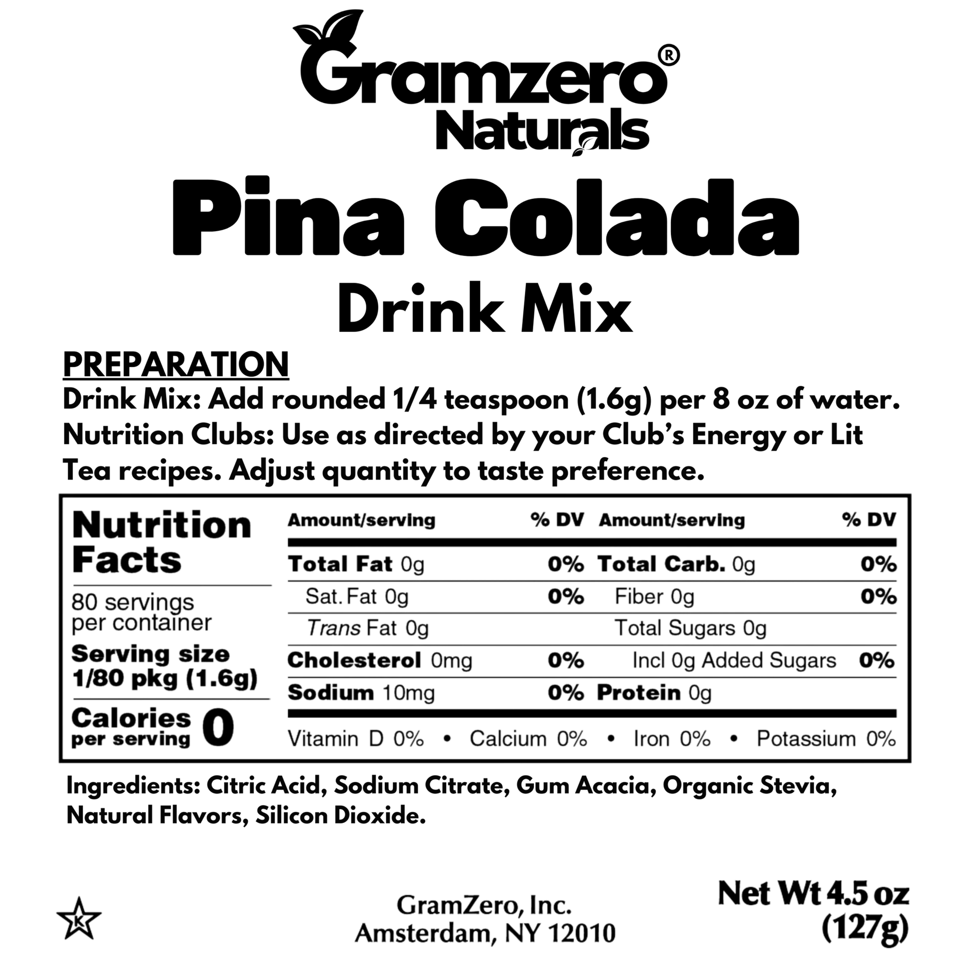 PINA COLADA is an ALL NATURAL Zero Calorie Drink Mix!
